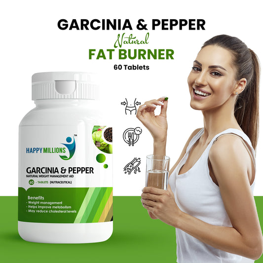 HappyMillions Garcinia & Pepper 60 Tablets | Natural Fat Burner | Weight Management & Metabolism Support | Ayurvedic Herbal Supplement