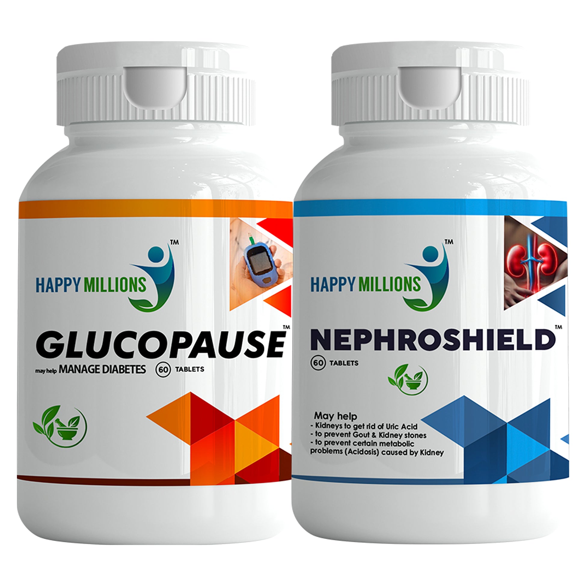 HappyMillions NephroShield & GlucoPause Combo | Kidney Detox & Blood Sugar Support | 60 + 60 Tablets
