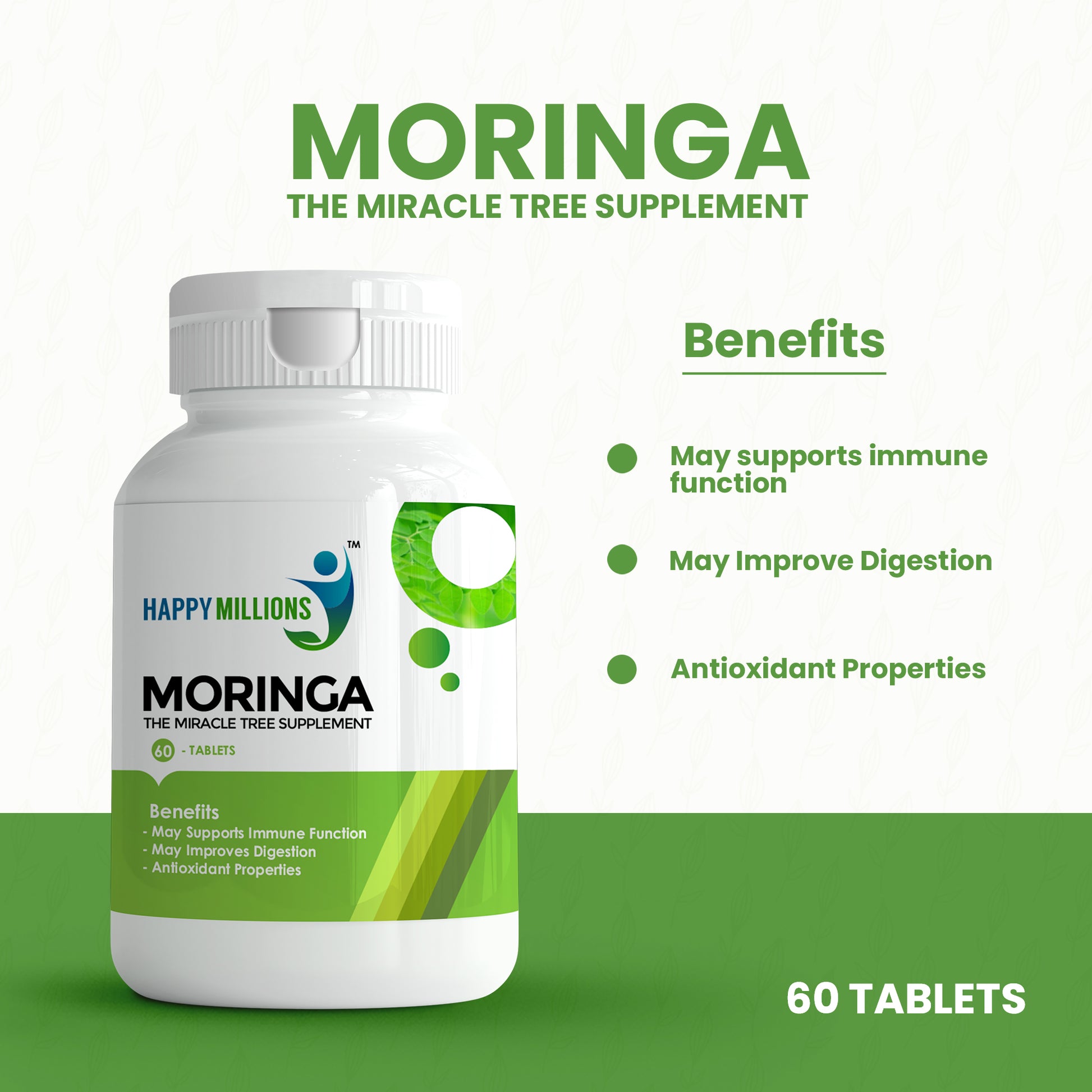 HappyMillions Moringa & Triphala Tablets Combo | 60 Tablets Each | Immunity, Digestion & Detox Support | Ayurvedic Herbal Supplement