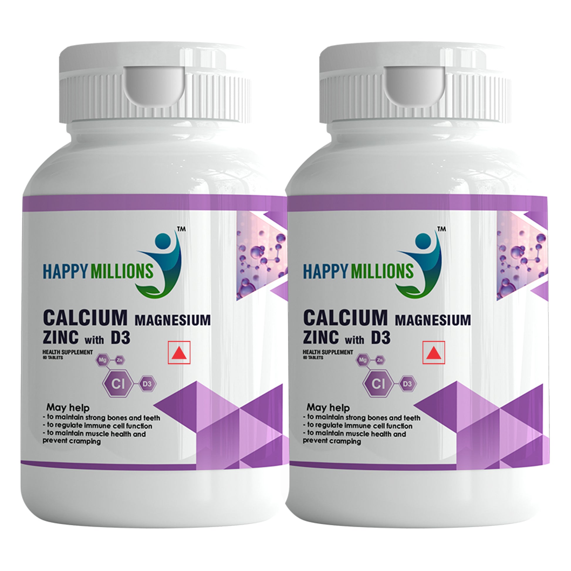Happy Millions Calcium Magnesium Zinc with D3 Tablet | 60+60 Tablets | Pack of 2
