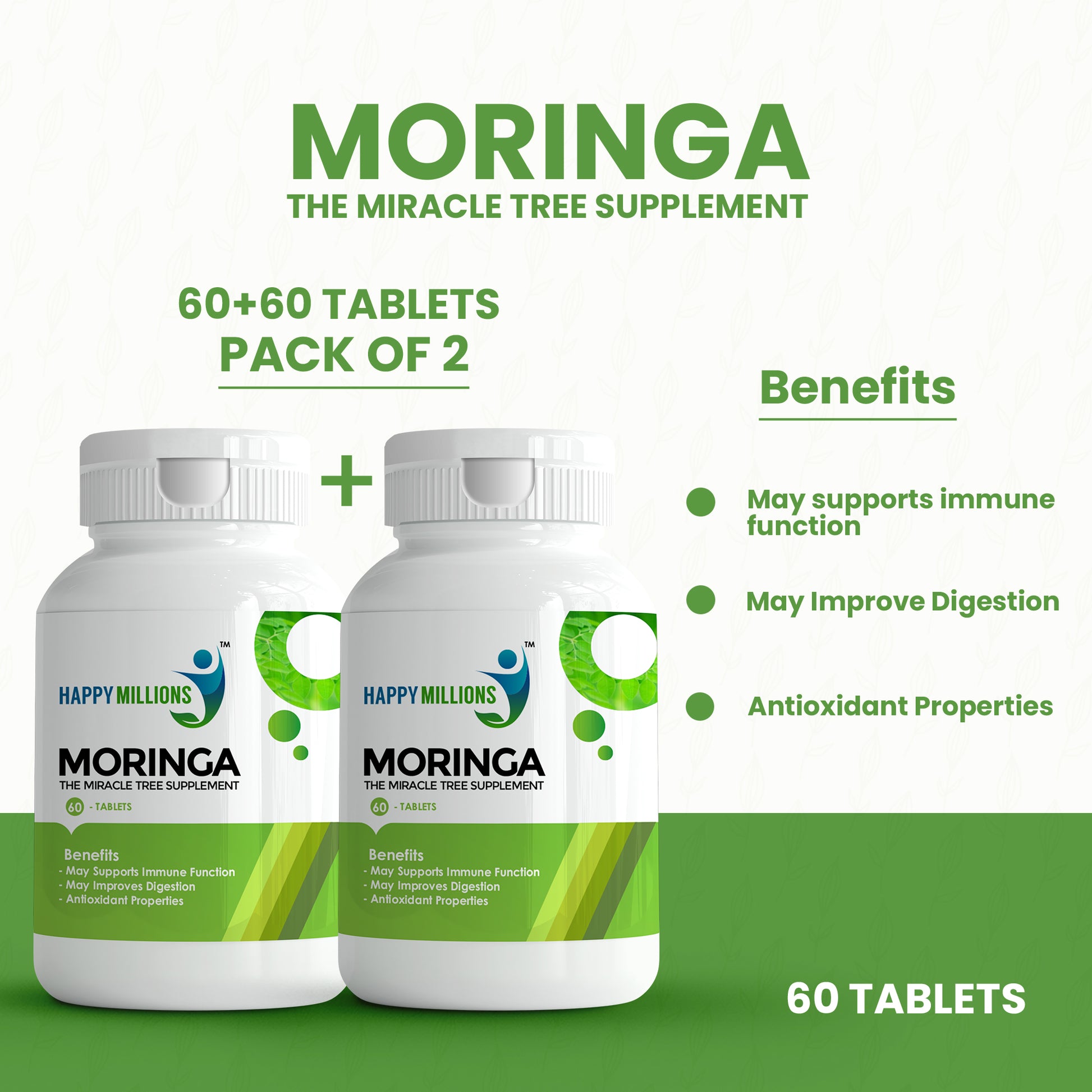 Happy Millions Moringa Tablets for Digestion | Combo Pack new