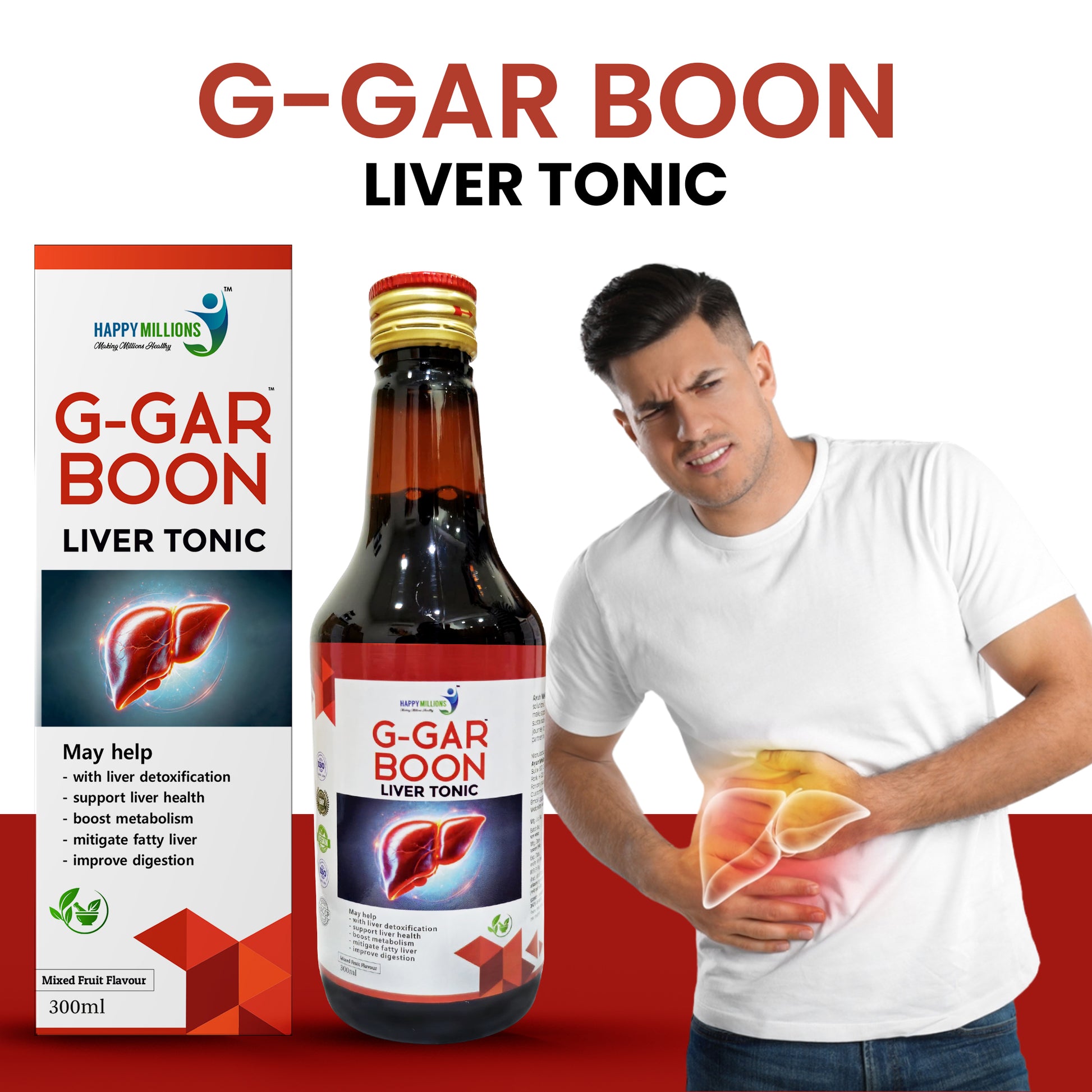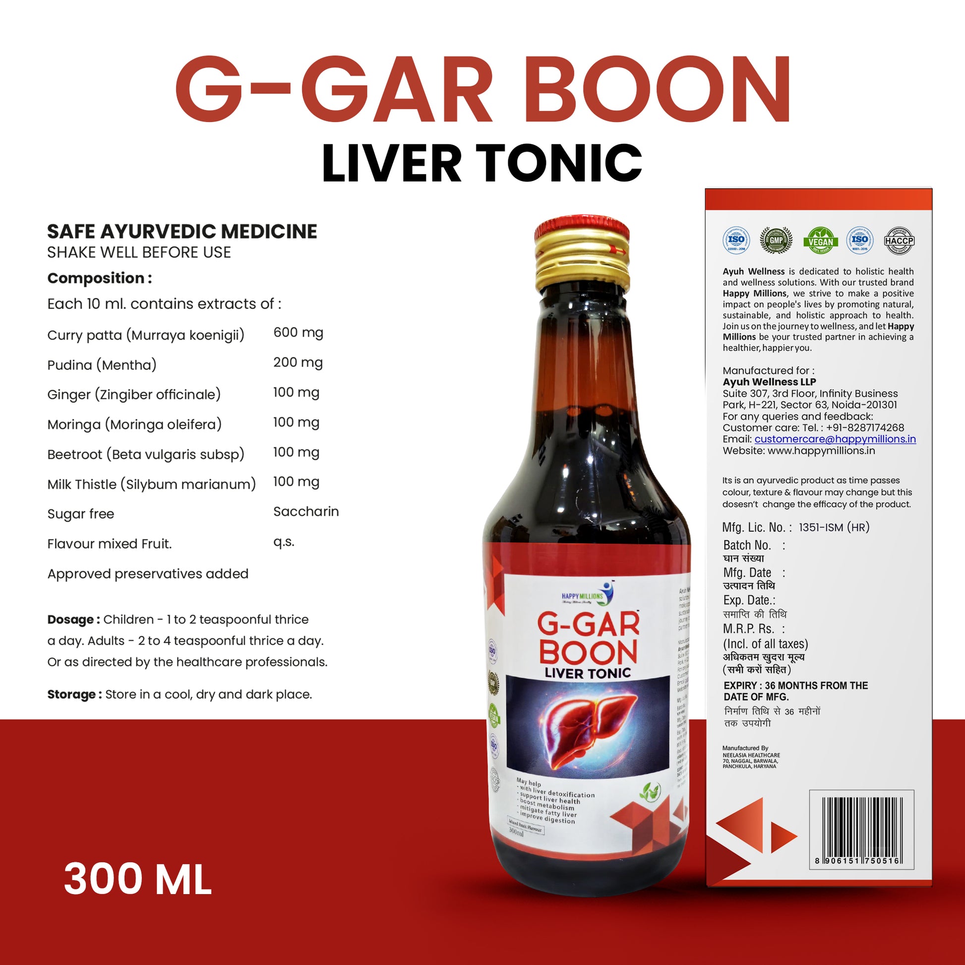 HappyMillions G-Gar Boon Liver Tonic | Ayurvedic Herbal Liver Detox | May Helps Liver Health, Aids Digestion, Reduces Fatty Liver, Boosts Metabolism, and Improves Vitality | 300ml