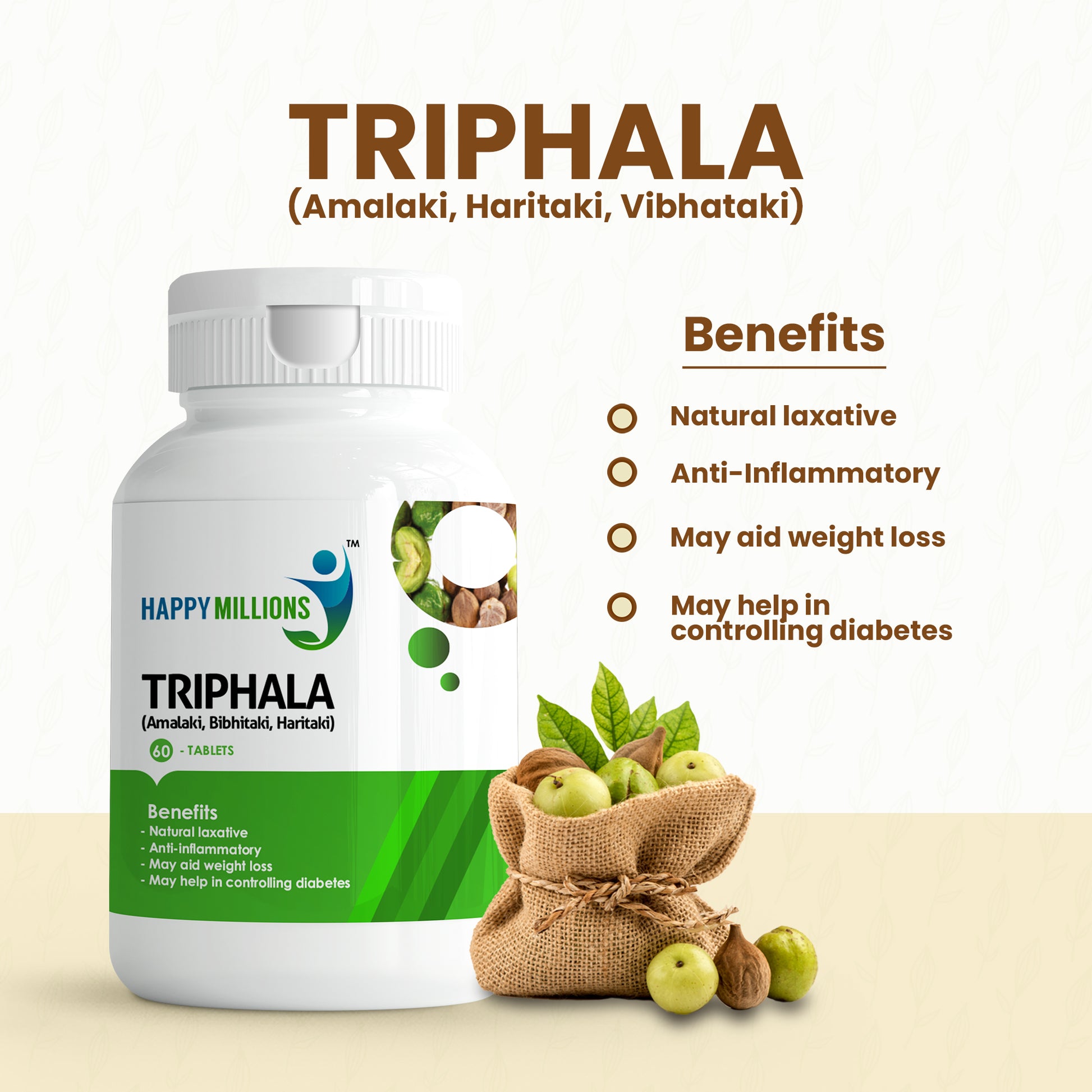 Discover the powerful benefits of the HappyMillions Triphala Tablets & Glucopause Tablets Combo. This Ayurvedic herbal supplement offers a holistic approach to wellness, combining two potent formulas designed to support digestive health and manage blood sugar levels naturally.