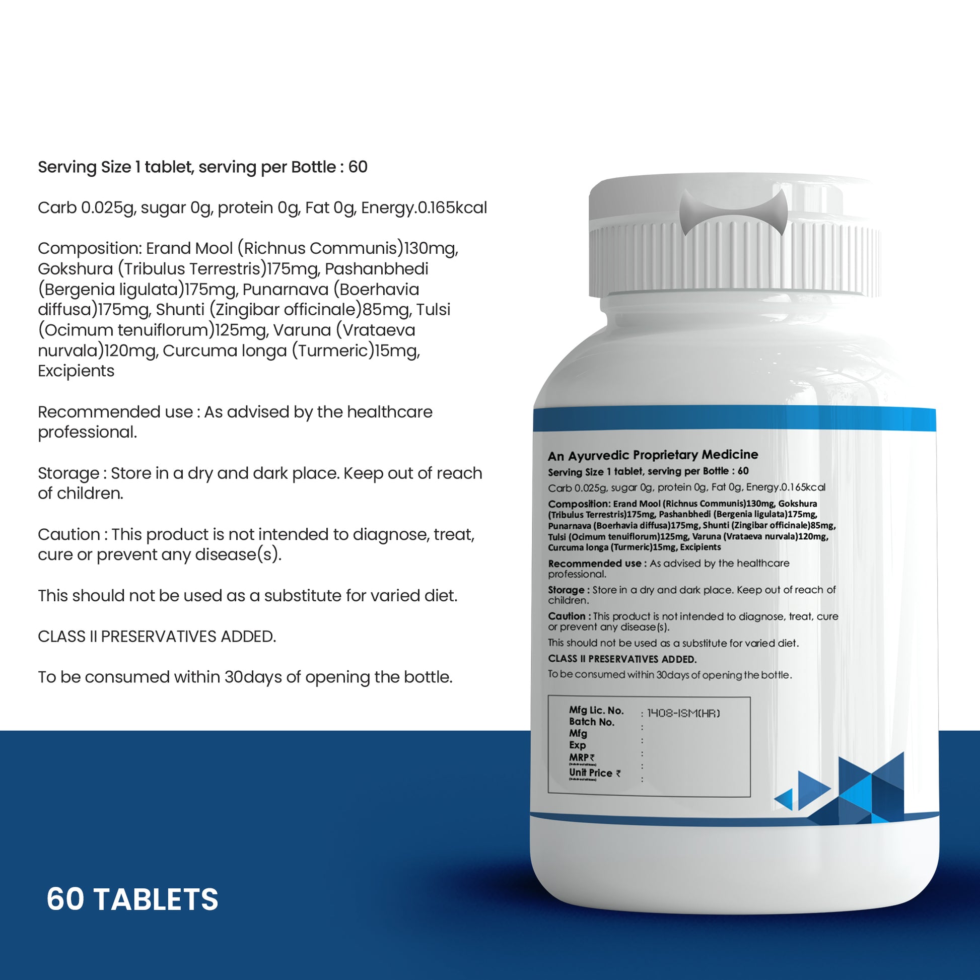 Triphala Tablets: Known for its potent cleansing properties, Triphala is a blend of three fruits—Amalaki, Bibhitaki, and Haritaki. It aids digestion, supports bowel regularity, and promotes natural detoxification.
